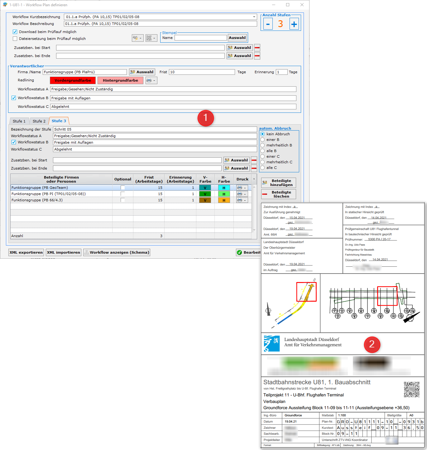 Workflows können einfach konfiguriert werden. Paralleles Prüfen und beliebig viele Stufen sind möglich.
